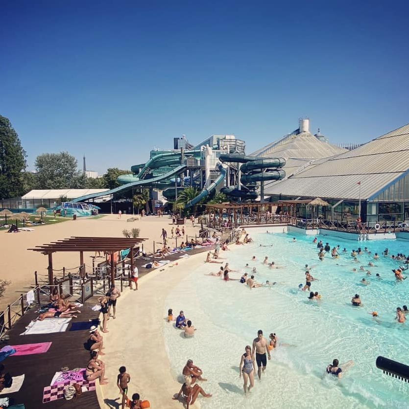 You can also bathe outside in permenant Paris swimming pools – see our Paris baby map to find the swimming pool most convenient for you. But if we’re choosing, Aquaboulevard (15e) – is our top pick of Paris pools. It’s perfect for young kids as there’s so many activities, and tons of both indoor and outside space, lots of shallow areas and a grassy outside area where you can picnic and take a break too.